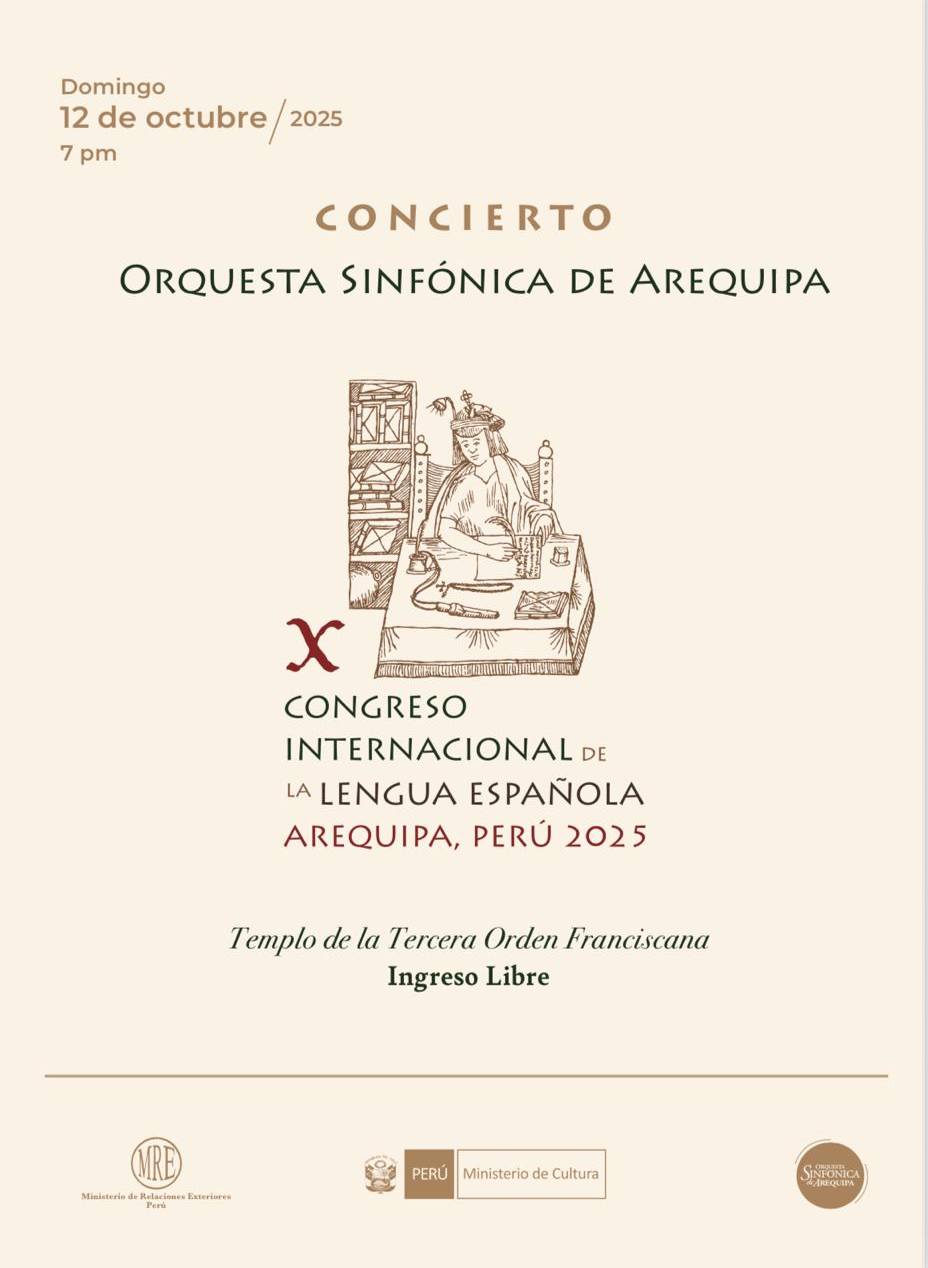 En el marco del X Congreso Internacional de la Lengua Española Arequipa 2025, la Orquesta Sinfónica de Arequipa presentará una gala junto al Coro Arequipa, y la participación de la solista María Rondón, bajo la dirección del