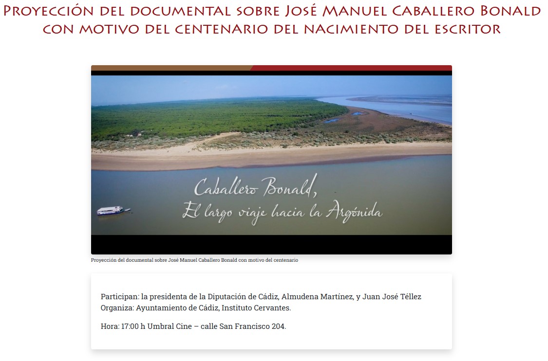 PROYECCIÓN DEL DOCUMENTAL SOBRE JOSÉ MANUEL CABALLERO BONALD