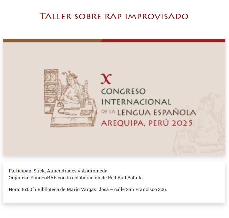 Participan: Stick, Almendrades y Andromeda Organiza: FundéuRAE con la colaboración de Red Bull Batalla