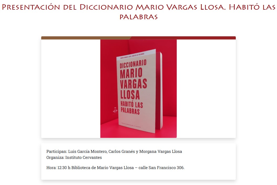 PRESENTACIÓN DEL DICCIONARIO MARIO VARGAS LLOSA. HABITÓ LAS PALABRAS
