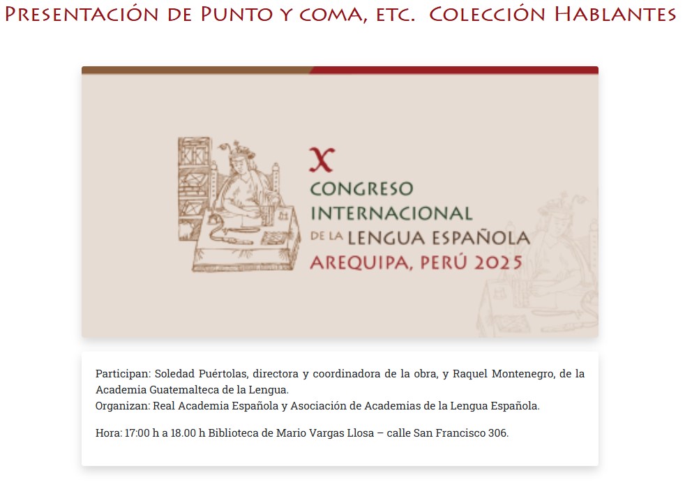 PRESENTACIÓN DE PUNTO Y COMA, ETC. COLECCIÓN HABLANTES