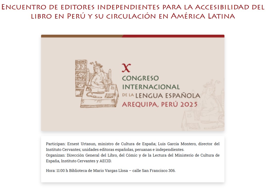 X-CILE. Encuentro de editores independientes para la accesibilidad del libro en Perú y su circulación en América Latina. Participan: Ernest Urtasun, ministro de Cultura de España; Luis García Montero, director del Instituto C
